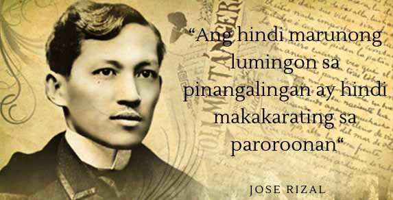 Nalilimot ng bawat isa sa inyo na habang napag-iingatan ang isang bayan ang kaniyang wika, napag-iingatan din nito ang katibayan ng kaniyang paglaya, katulad ng pagpapanatili ng isang tao sa kaniyang kasarinlan, upang mapanatili niya ang kaniyang sariling paraan ng pag-iisip. Ang wika ang pag-iisip ng bayan. – Jose Rizal